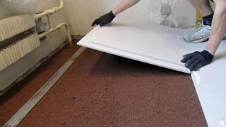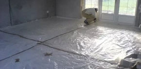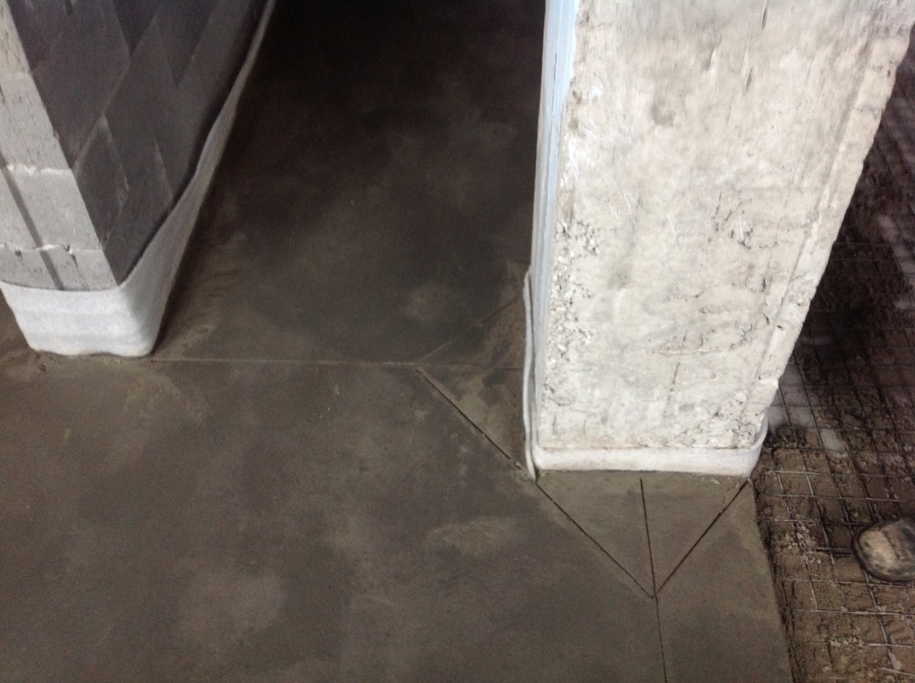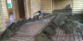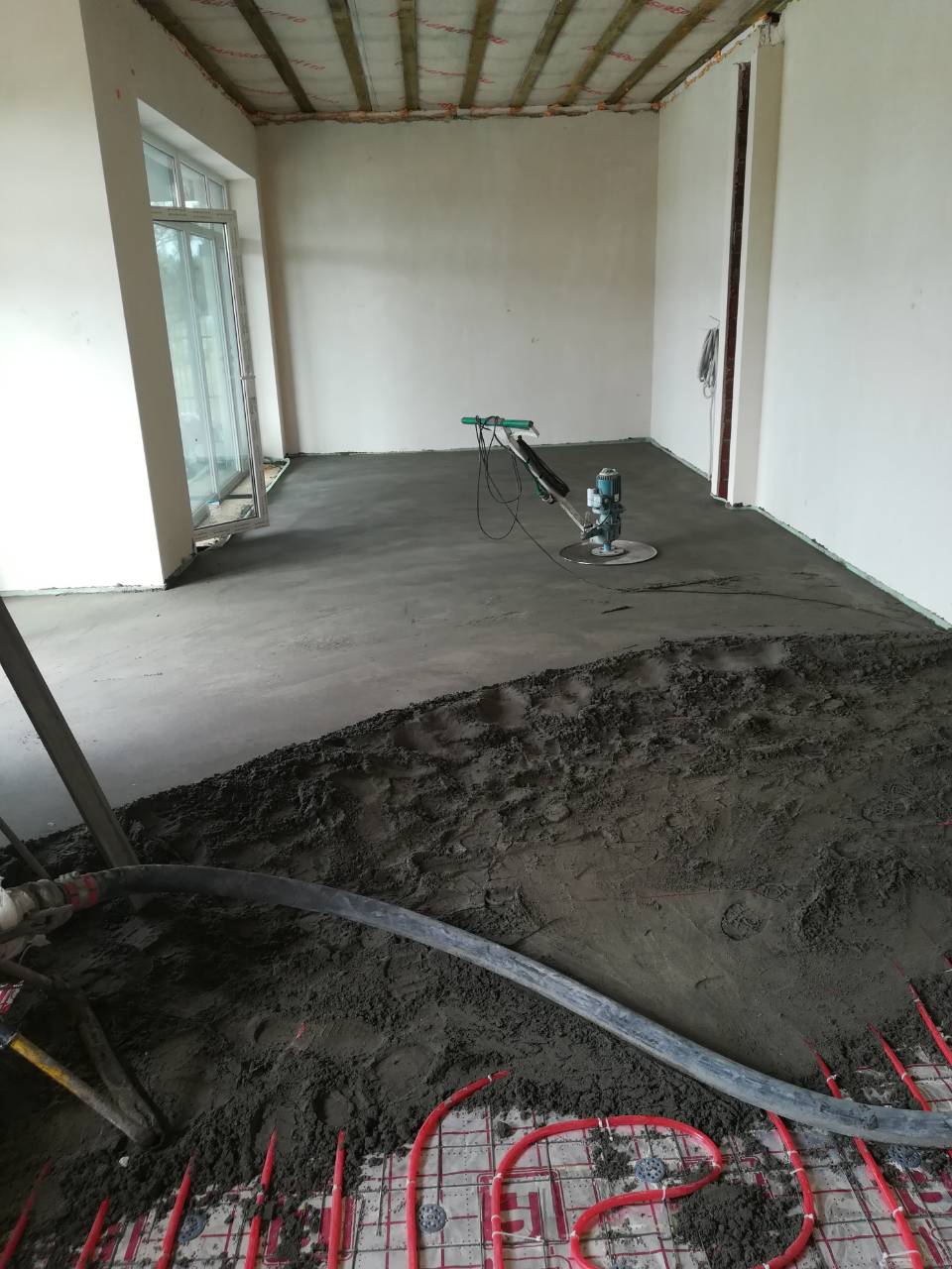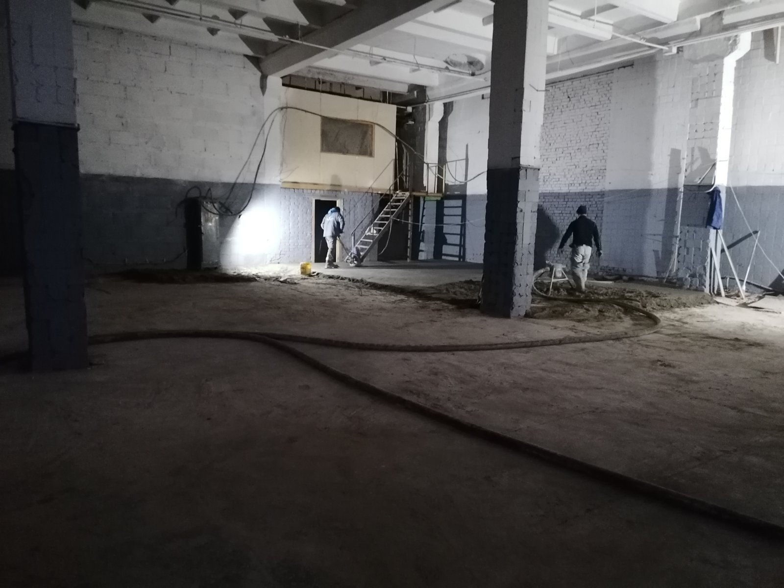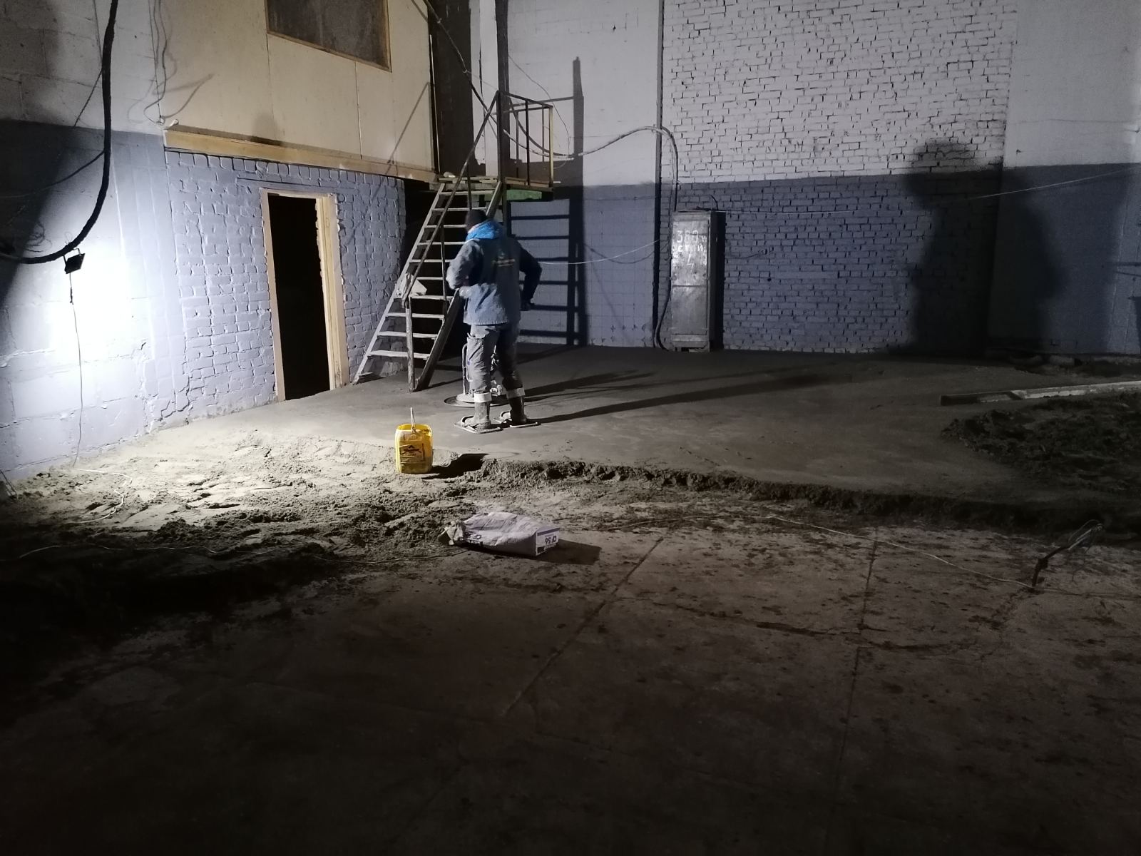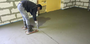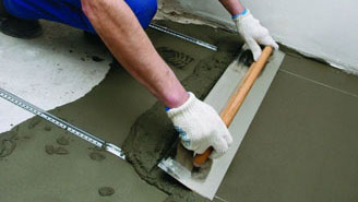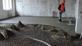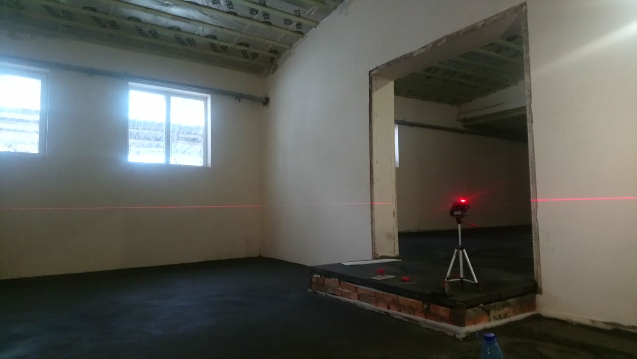 Раствор выравнивается и трамбуеться по всему периметру помещения по натертым заранее маякам правилами необходимой длинны.